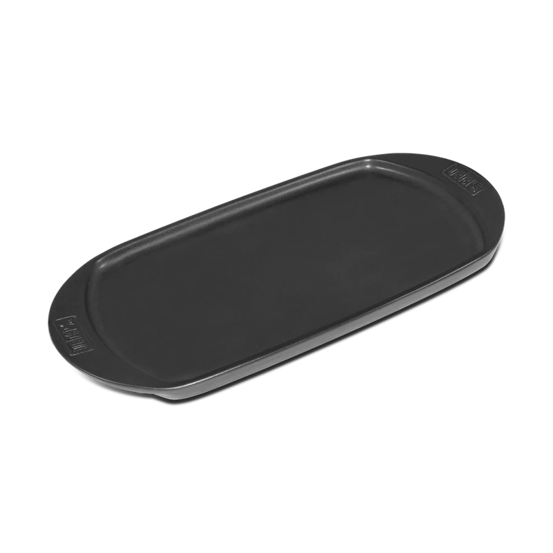 Maak u gereed voor quality time in de achtertuin. Met de vlakke bakplaat is het eenvoudig om een portie gehaktballen, garnalen, asperges of pannenkoeken op de barbecue te bereiden. Door de keramische antiaanbaklaag kan de bakplaat gloeiend heet worden en door de handgrepen is hij gemakkelijk op de barbecue te zetten en eraf te halen als hij koud is.