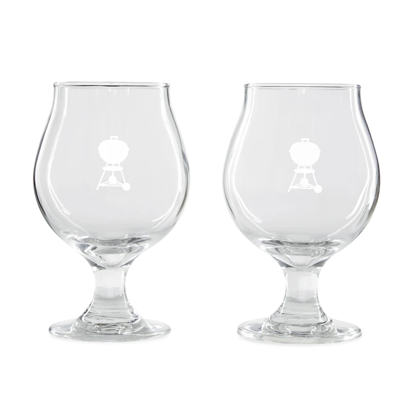 Hef een glas – of twee. Deze Limited Edition Weber® Belgische Craft bierglazen maken elke feestelijke bijeenkomst compleet. Geniet van je favoriete drankje in dit mooie glaswerk, voorzien van een logo met een frosted ketel.