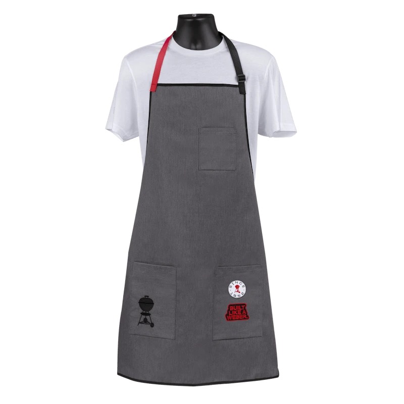 Ons Limited Edition Collectors-schort, uitgekozen door Weber-Grill Masters, geeft je barbecuevaardigheden zeker een boost terwijl je netjes en schoon blijft. Het ontwerp op basis van één maat die bijna iedereen past heeft een verstelbare halsband en koordjes om de taille. Dankzij de handige gereedschapszakken heb je eenvoudig toegang tot je tang, kruiden, vleesthermometer of mobiele telefoon. Maak dit schort echt persoonlijk met Weber-emblemen (afzonderlijk verkrijgbaar).