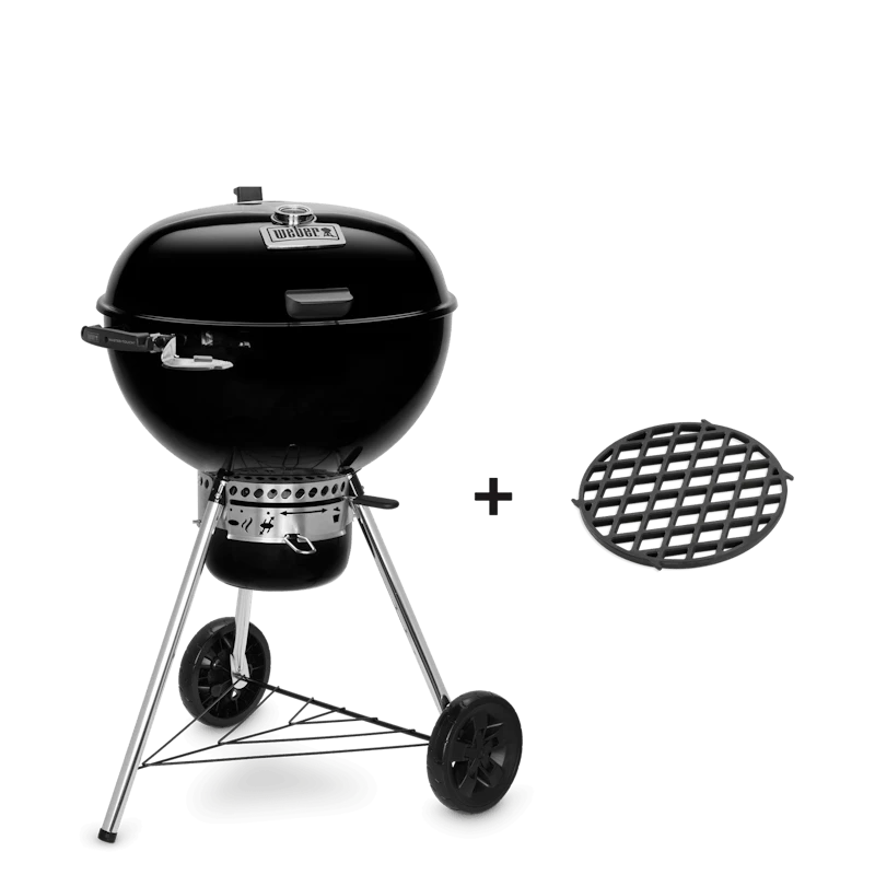 De Master-Touch Premium, de nieuwe 3-in-1 houtskoolbarbecue: roken, braden en grillen. Dankzij het Gourmet BBQ System: van steaks (GBS Sear Grate inbegrepen), sappige pulled pork en zelfs desserts. De Master-Touch, met nieuwe functies, zoals een handig scharnierend deksel en houtskoolring/Diffusere Plate voor efficiënt brandstofverbruik, is het antwoord op alles wat met barbecueën te maken heeft.