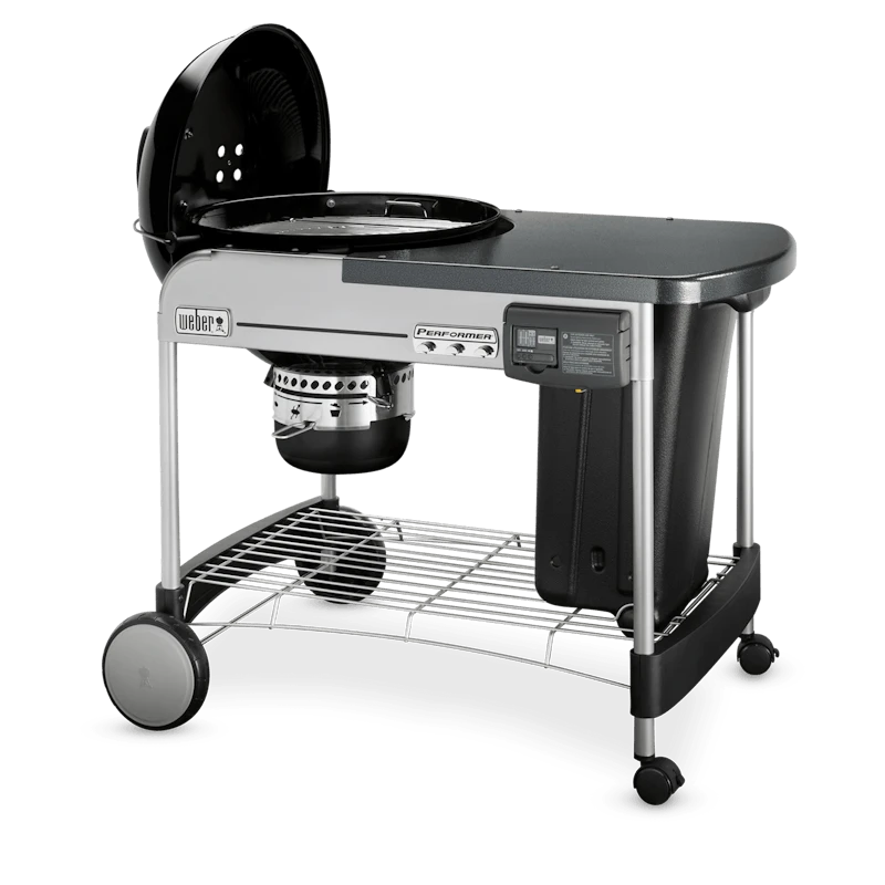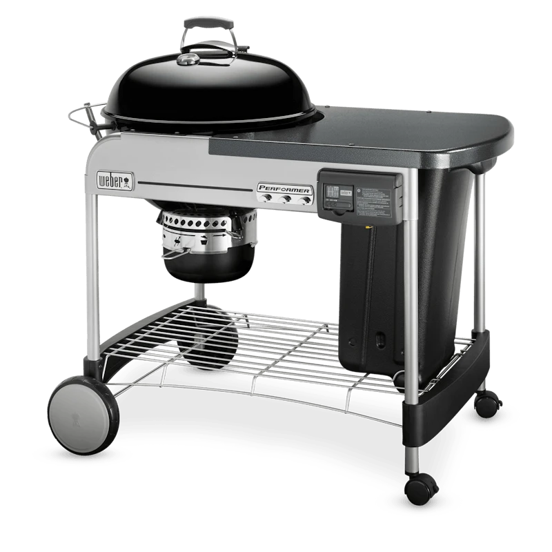 Ontsteek het vuur en ontdek de volgende generatie grillen op houtskool. Met één druk op de knop zijn de kolen gloeiend heet en sist het eten. Nu hoeft u alleen nog maar te wachten en te kijken hoe uw Performer Deluxe GBS houtskoolbarbecue al het werk doet.