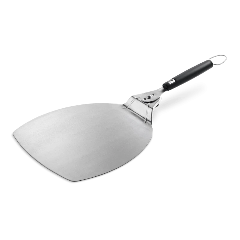 Pizzaliefhebbers, meldt u: dit gereedschap is een echte musthave. Hij glijdt perfect onder de korst door zodat u de pizza met gemak van de barbecue naar de tafel verplaatst, en biedt een optimaal oppervlak om op te snijden. De duurzame Pizzaspatel is gemaakt van dik roestvrij staal dat stevig genoeg is om het gewicht te dragen van zwaar belegde gebarbecuede pizza‘s, en heeft een handvat van zacht zwart rubber met een antislip-effect. Wanneer u klaar bent met de Pizzaspatel kunt u het handvat naar binnen klappen om hem compact op te bergen, de spatel ophangen aan de ingebouwde gereedschapshaakhendel, of zelfs in de vaatwasser zetten om hem snel en gemakkelijk schoon te maken.