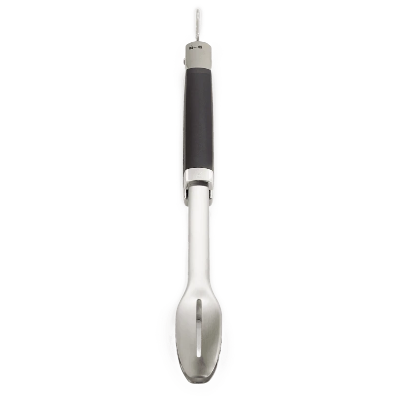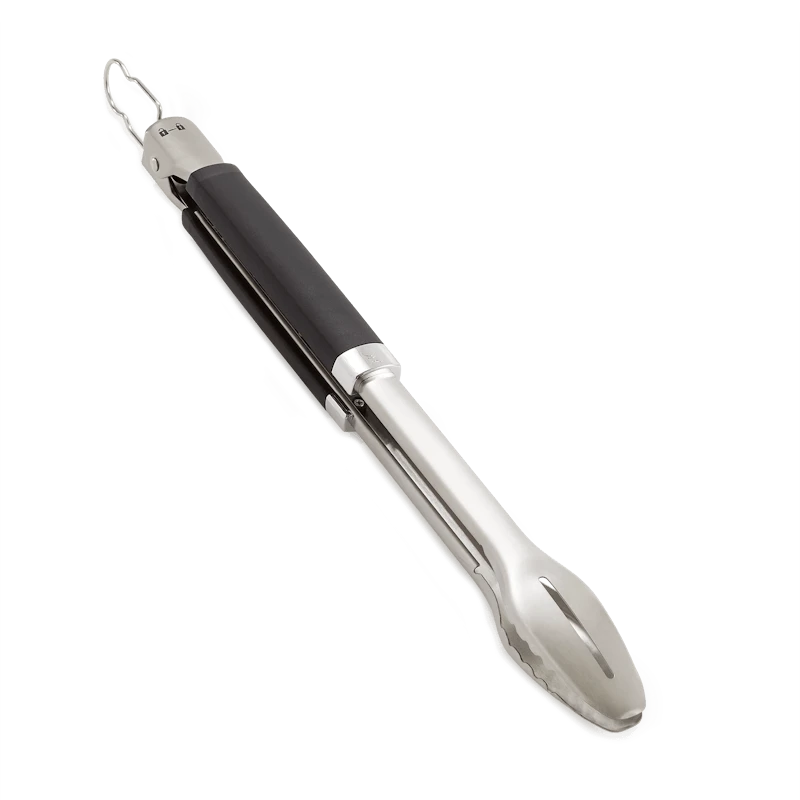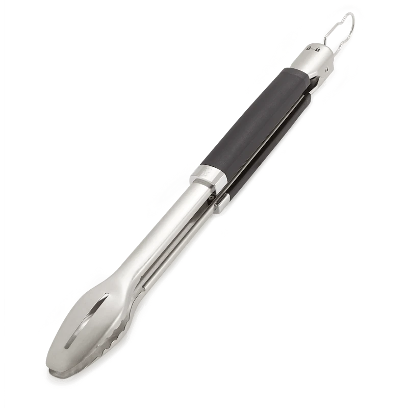 Met de Precision barbecuetang hanteer je probleemloos al je gerechten op de barbecue. De duurzame roestvrijstalen constructie en zachte handgreep geven je volledig en comfortabel de controle over je eten. De platte voorkant schuift eenvoudig onder je eten en je keert ook probleemloos delicate gerechten, zoals groente en vis, terwijl je met de precieze greep zware ribstukken probleemloos verplaatst. Met de handsfree vergrendeling open en sluit je de tang snel en eenvoudig en kun je hem compact opbergen.