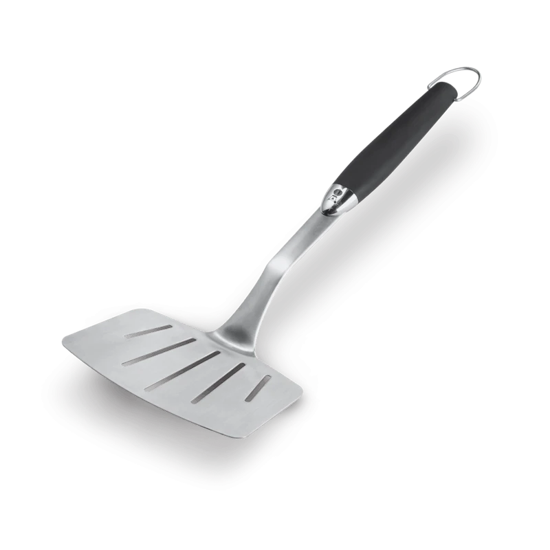 Delicate visfilet moet uiterst voorzichtig worden behandeld op het grillrooster. De brede kop van de Premium spatel pakt de hele filet op en draait deze voorzichtig om zodat alles op zijn plaats blijft en beide zijden even mooi gegrild worden. Deze robuuste spatel is ook sterk genoeg voor het zonder moeite optillen van grote braadstukken.