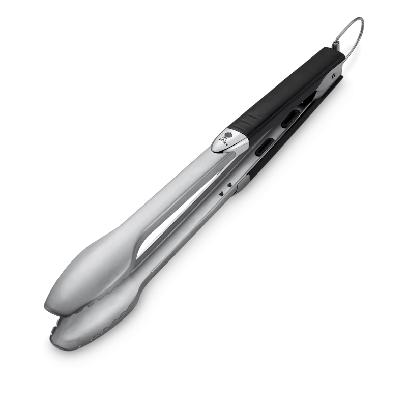 Dit is de barbecuetool die alles kan: worstjes omdraaien, gesneden groente herschikken, en zelfs grote stukken vlees verplaatsen. Met het soft-touch handvat biedt de duurzame roestvrijstalen vergrendelbare tang een comfortabele antislip-grip. Bovendien is hij zodanig lang dat uw handen ver van het vuur blijven. Gebruik het unieke, handige ontgrendelingsmechanisme van de 43 centimeter lange tang om hem te openen: tik simpelweg het bovenste uitstekende gedeelte tegen uw heup met de ene hand terwijl u in de andere een bord vasthoudt. Wanneer hij niet is gebruik is kunt u hem vergrendelen zodat hij compact opbergbaar is. De tang is even duurzaam als fraai en functioneel, en bovendien ook vaatwasserbestendig: met andere woorden, het enige waar u zich na het eten druk over hoeft te maken is: wat hebben we voor toetje?