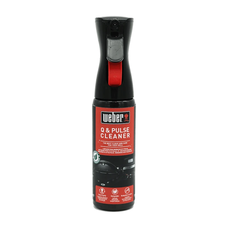 De Q- en Pulse-reinigingsspray met fijne nevel maakt op effectieve wijze de buiten- en binnenkant van Weber® Q- en Pulse- barbecues schoon. Als je de spray regelmatig gebruikt, blijft je barbecue het hele jaar lang glanzend en schoon.
